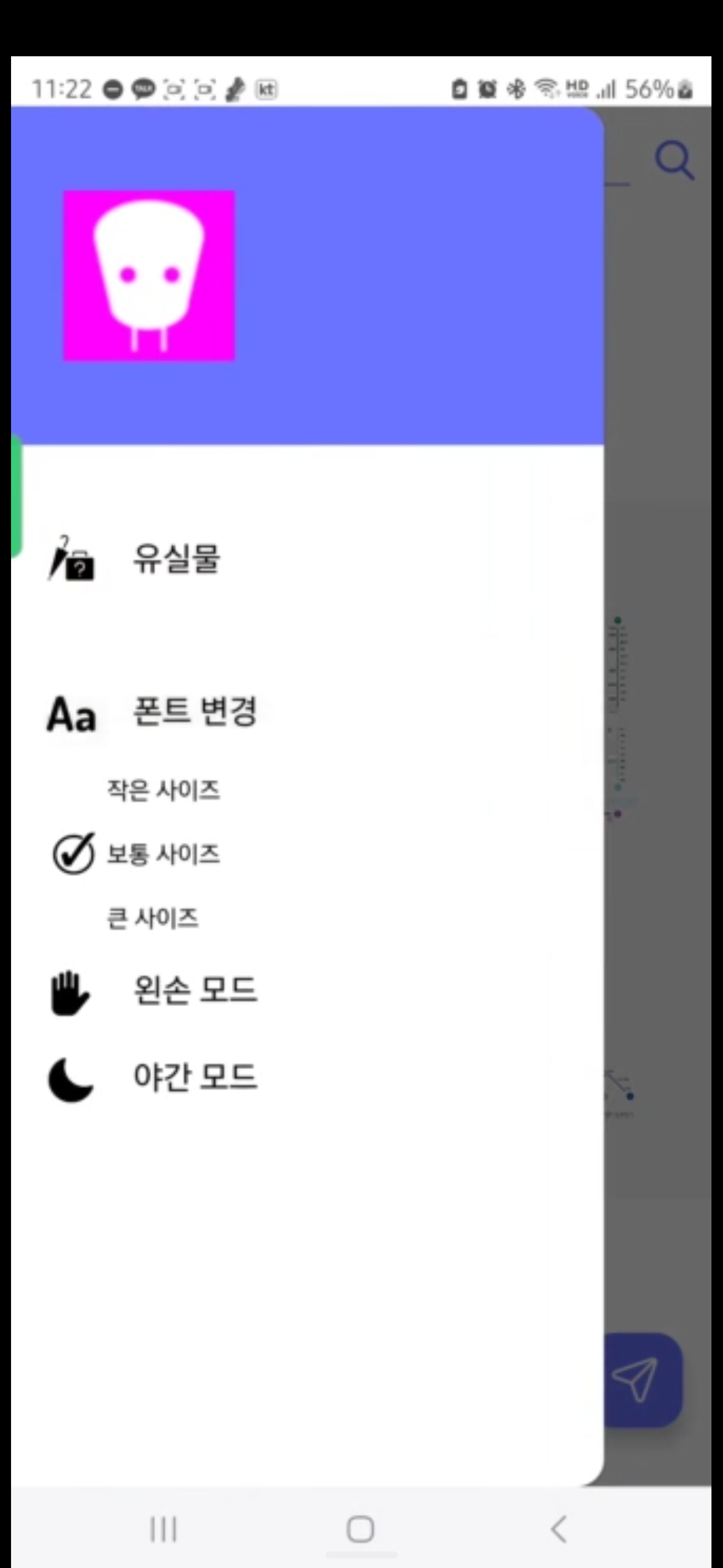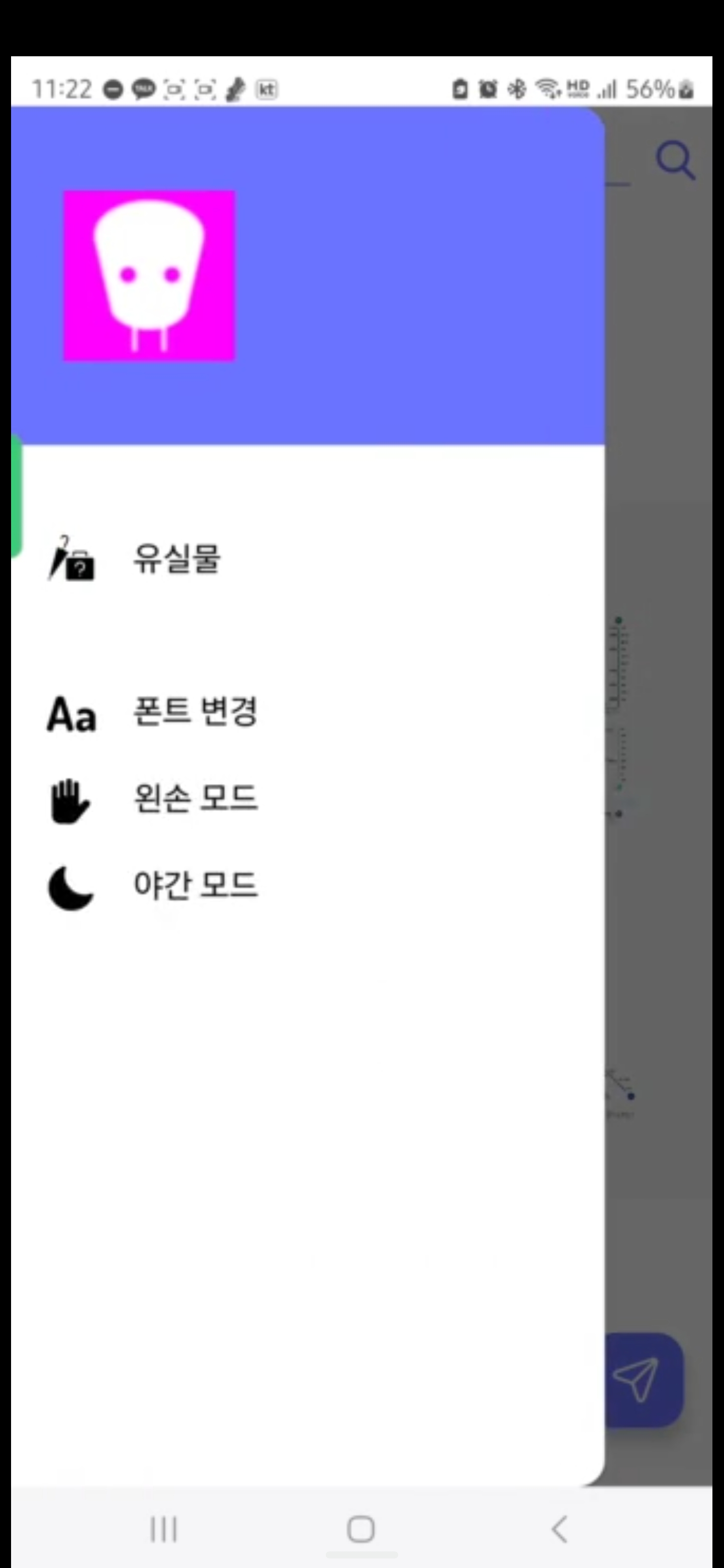 앱의 로고와 UI 디자인을 직접 제작하고 교내 테스트 환경을 기반으로 가상 맵을 구축하였으며, AR 모드에서의 편의 기능을 구현. 2D→3D 전환과 화살표 렌더링을 통한 길 안내와 주변 시설의 실시간 정보 제공 기능을 담당.